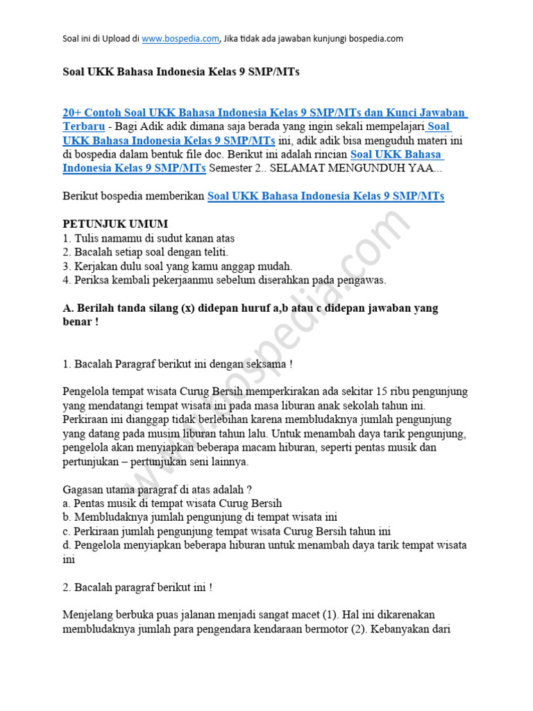 Artikel ini akan mengupas tuntas berbagai jenis latihan soal UKK Bahasa Indonesia Kelas 4, strategi efektif dalam mengerjakannya, serta tips penting agar siswa dapat menghadapi ujian dengan percaya diri dan sukses. Dengan pemahaman mendalam dan latihan yang konsisten, UKK Bahasa Indonesia bukan lagi menjadi momok menakutkan, melainkan sebuah kesempatan untuk menunjukkan kemampuan terbaik.